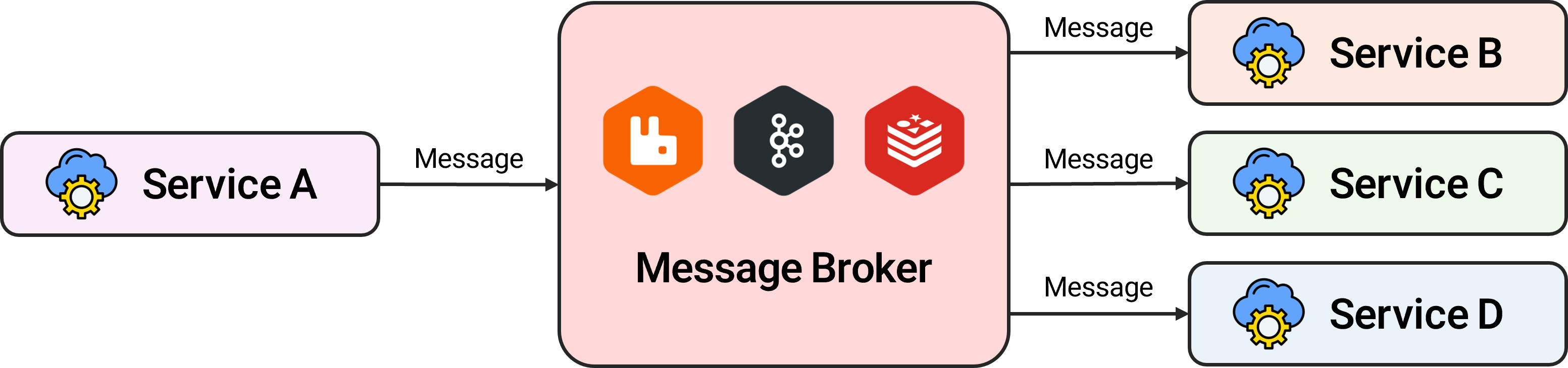 현재 대표적인 메시지 브로커로는 RabbitMQ, Apache Kafka, Redis(Pub/Sub)가 있습니다.