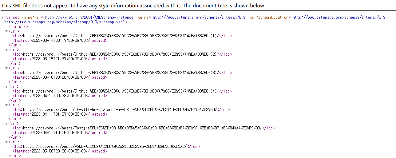 위 설정을 추가한 뒤 수정 내역을 커밋하고 배포하면, Jekyll이 자동으로 사이트맵을 생성하게 됩니다.